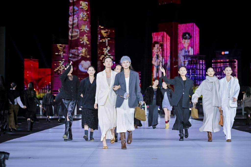 当模特身着创新研发的超柔软高端面料款款而行,服装的质感与形态成为身体与空间对话的媒介——羊毛的暖是拥抱自我的笃定,真丝的滑是挣脱束缚的轻盈,牛仔的挺括是永不妥协的倔强。“这件衣服,不是装饰,是觉醒时刻的‘声音具象’。”品牌方如此诠释。