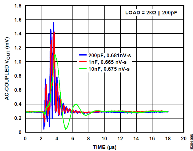 从基准测量结果可以看出,电压增量与外部连接的电容是相对独立的,因为传输到外部的动态能量通过DAC输出引脚这一低阻抗路径进行耗散。