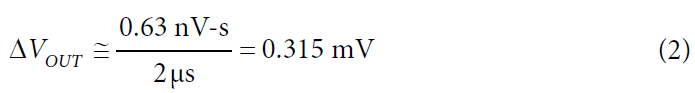举个例子,若干扰为0.63nV-s,更新频率为2μs,则产生的电压增量为: