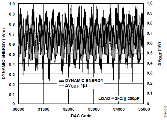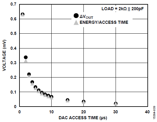 要以高分辨率测量动态能量,输出信号必须交流耦合。这样,当试图以快速访问时间测量动态能量时,部分直流分量可能会丢失。因此,当DAC访问时间过快导致此多余能量无足够时间耗散时,ΔVOUT(直流值)是量化此能量的更好方法。