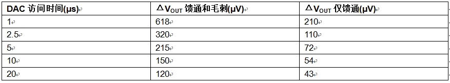 某些情况下,当DAC仅访问读/写寄存器且不执行DAC内核更新操作时,电压增量仅由数字馈通引起。